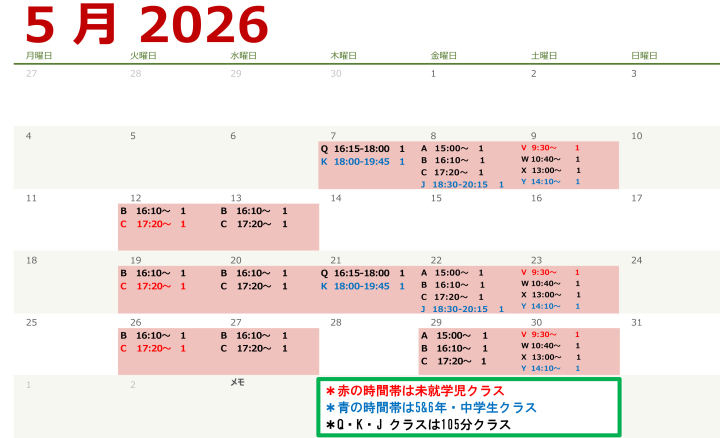 ※ お休みのご連絡は平日クラスは午前12時まで、