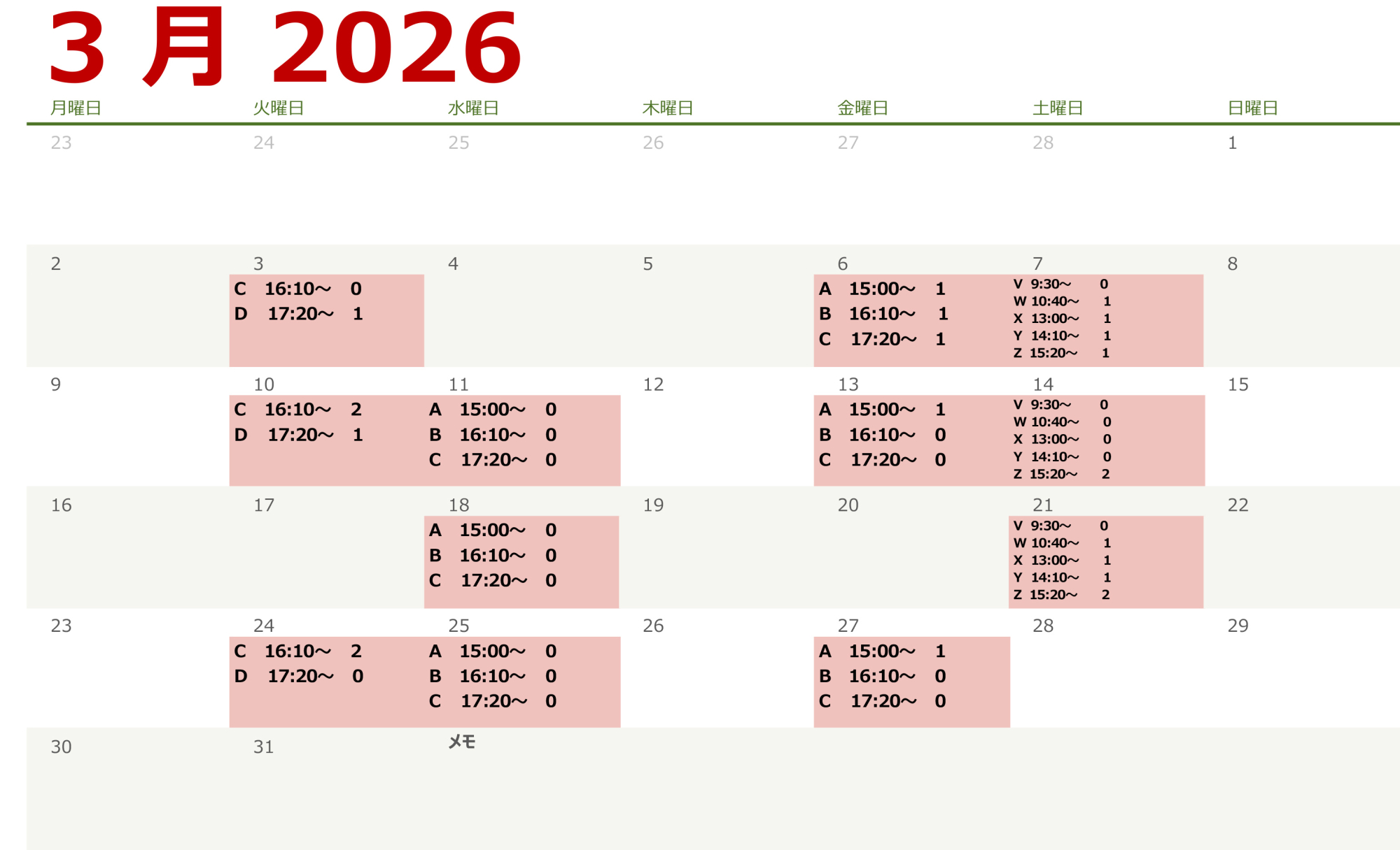 振替については空枠であれば小学生・未就学児・中学生に関係なく予約できます