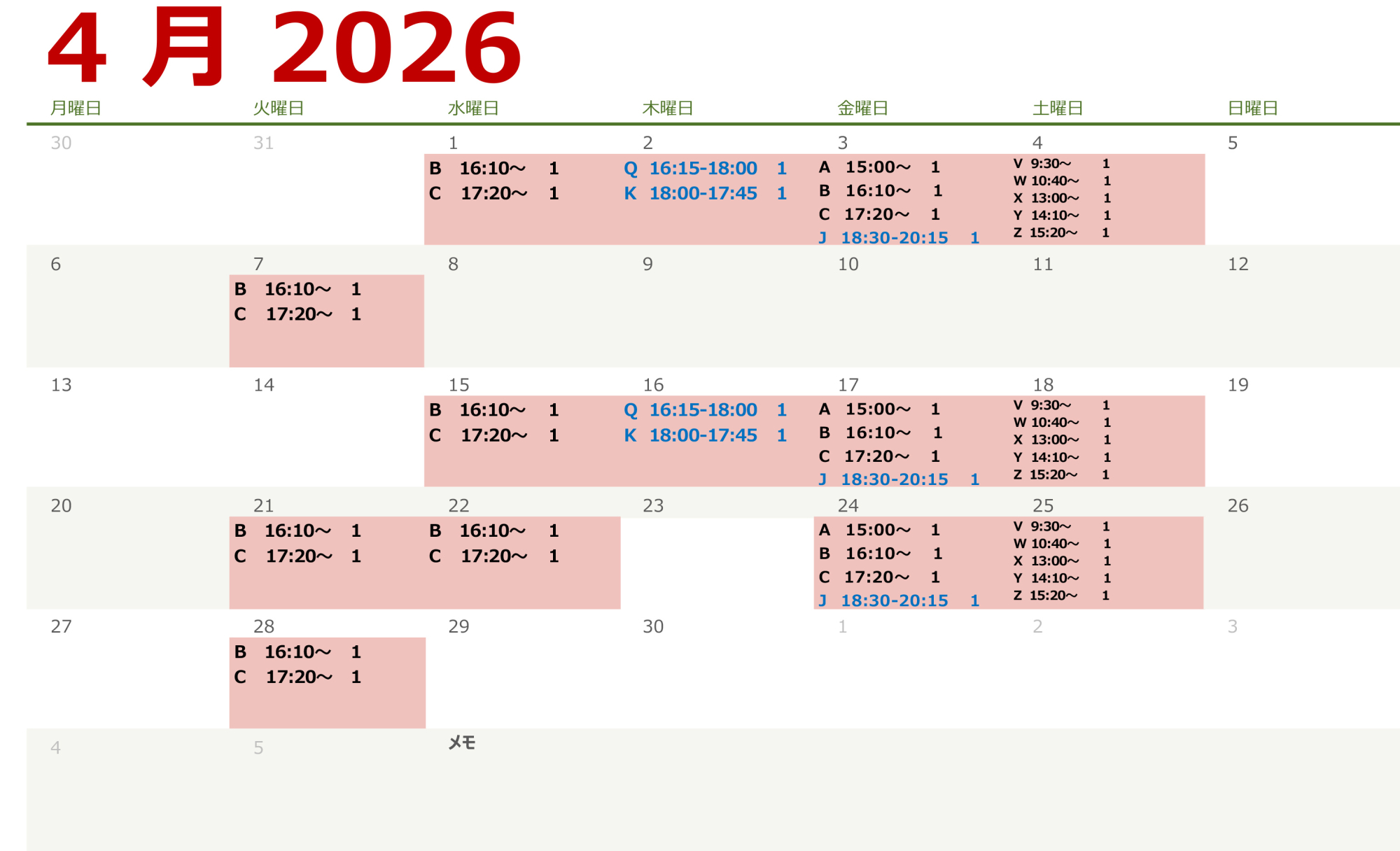 ※ 振替はお休みする日の 前月・当月・翌月に受講可能
